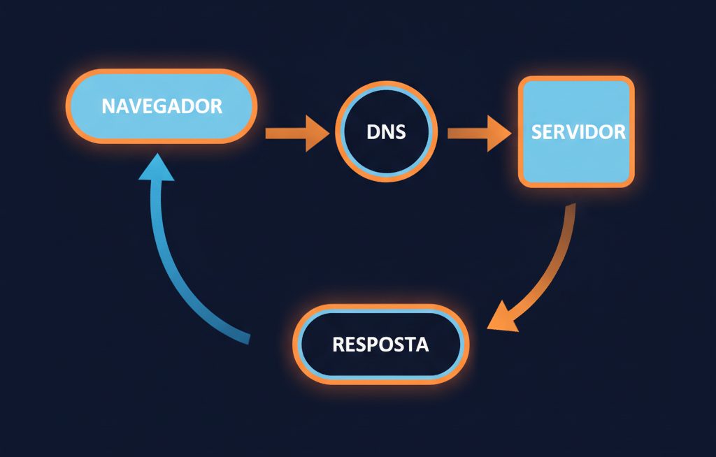 É simples, mas poderoso — e serve como base para compreender como qualquer site, sistema ou serviço online realmente funciona.